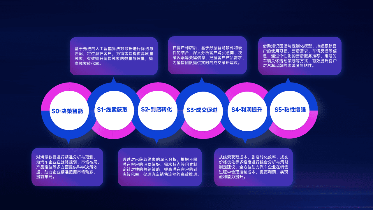 通过拓宽潜在客户来源、、优化线索分配并提高到店转化率,,,以增强销售效率。。。同时,,,,利用线索数据不断优化分析模型,,有效提升转化率,,,,扩大营销影响力。。。。